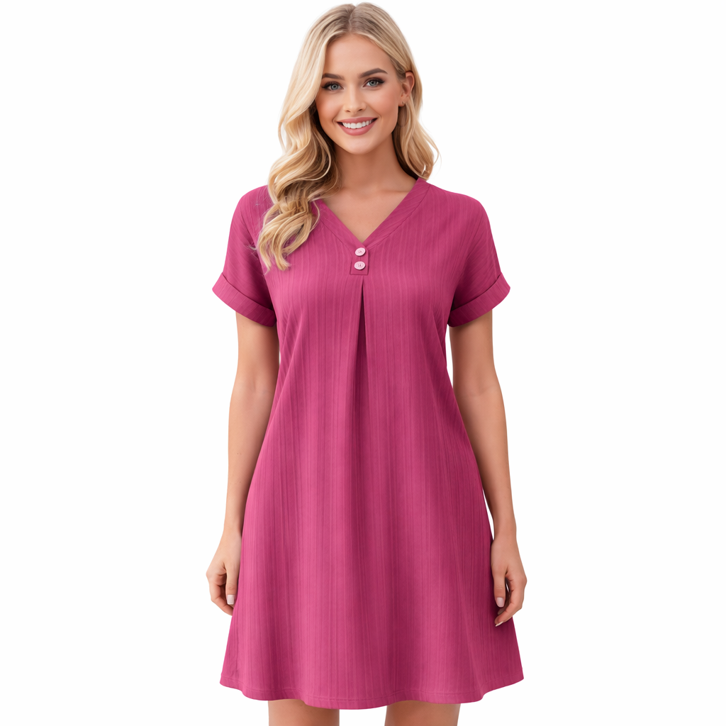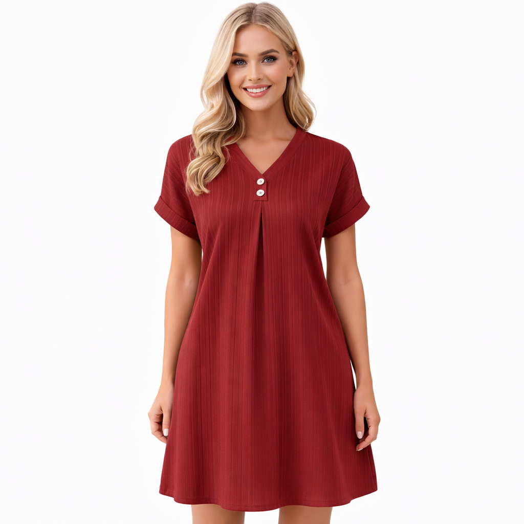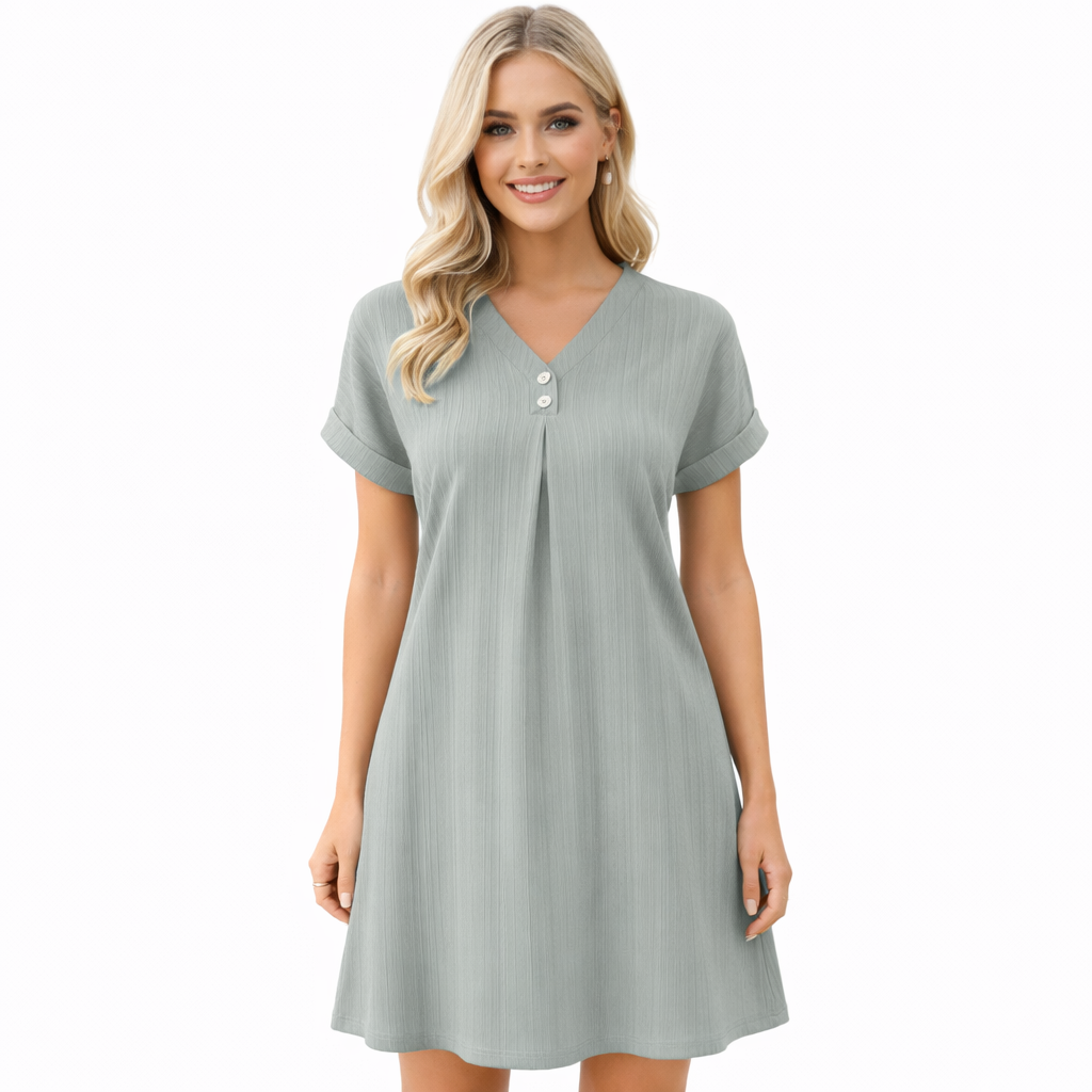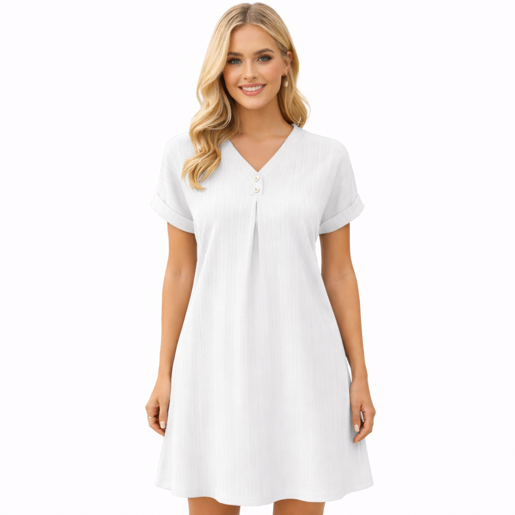 Sommerlig V-hals Kjole for Kvinner – Enkel Minikjole med Knapper til Hverdag og Kontor