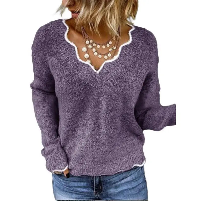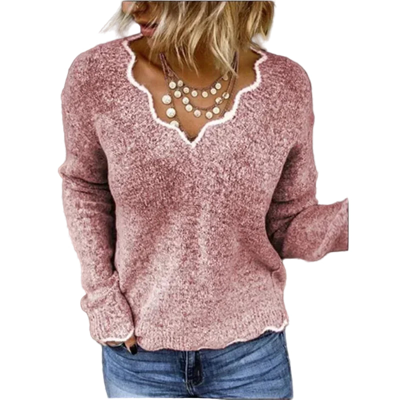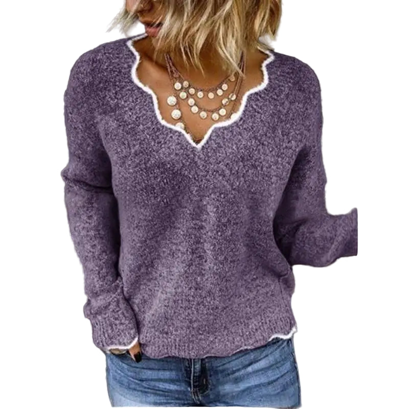 Søt Strikkegenser med V-hals – Elegant og Komfortabel til Høst og Vinter