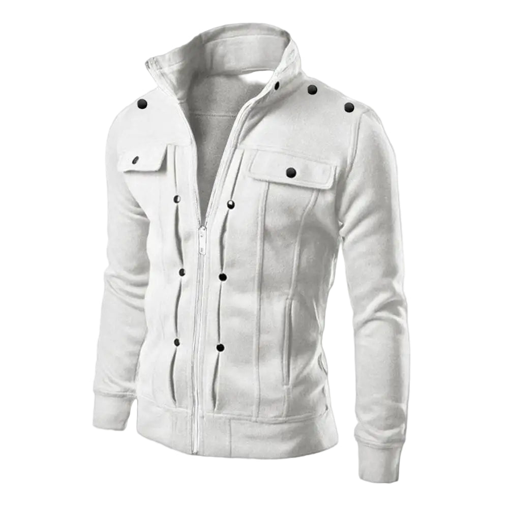 Stilren Herrejakke med Ståkrage – Lang Jakke med Glidelås og Knapper | Klassisk og Elegant til Vår og Høst