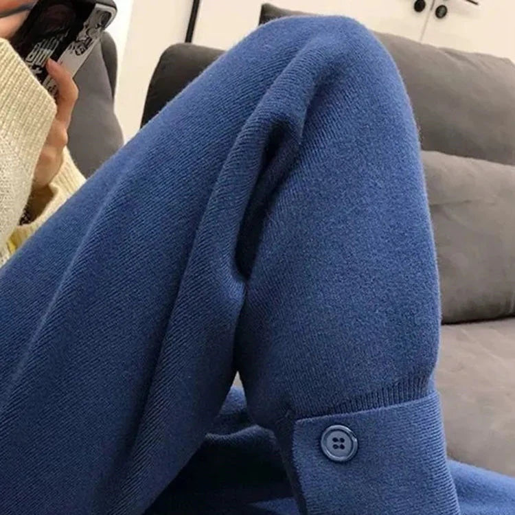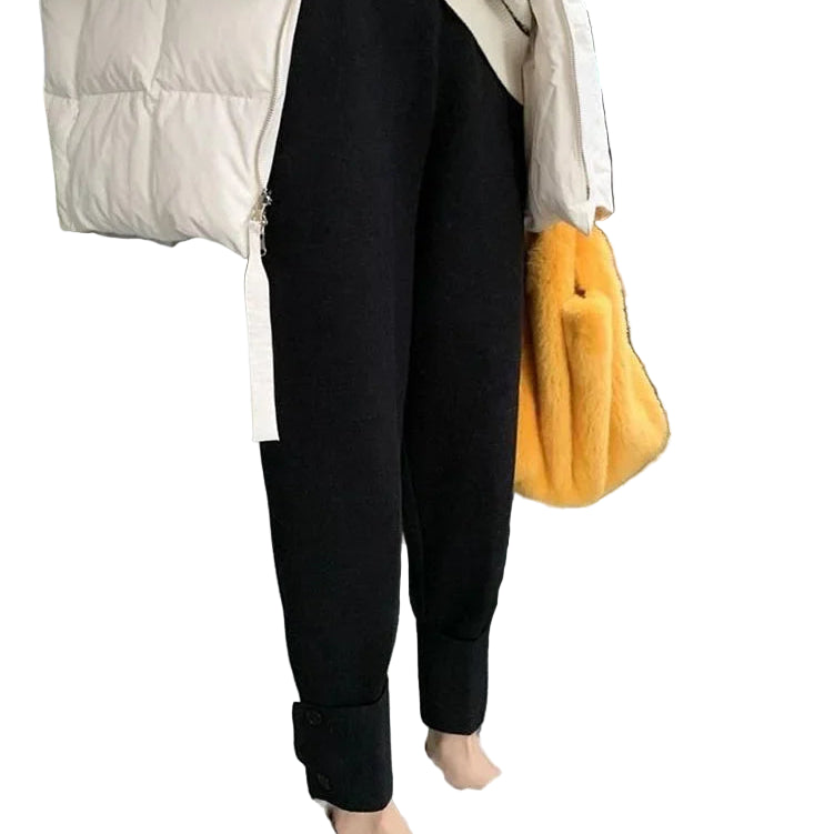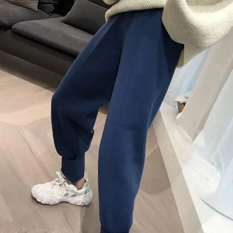 Strikkede Haremsbukser for Kvinner – Tykk og Varm Høytlivsmodell | Koreansk Baggy Stil til Høst og Vinter