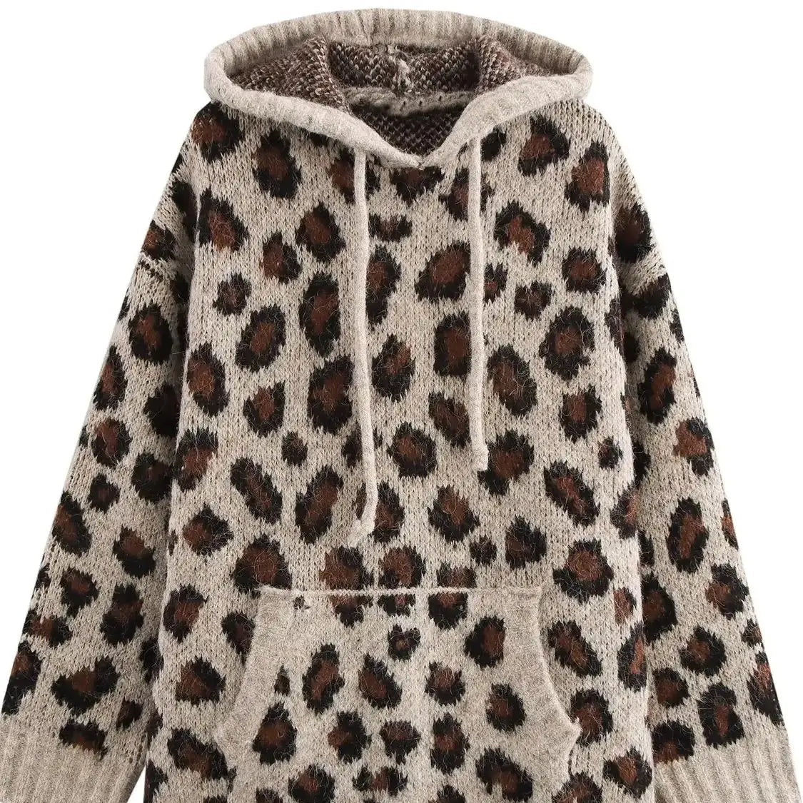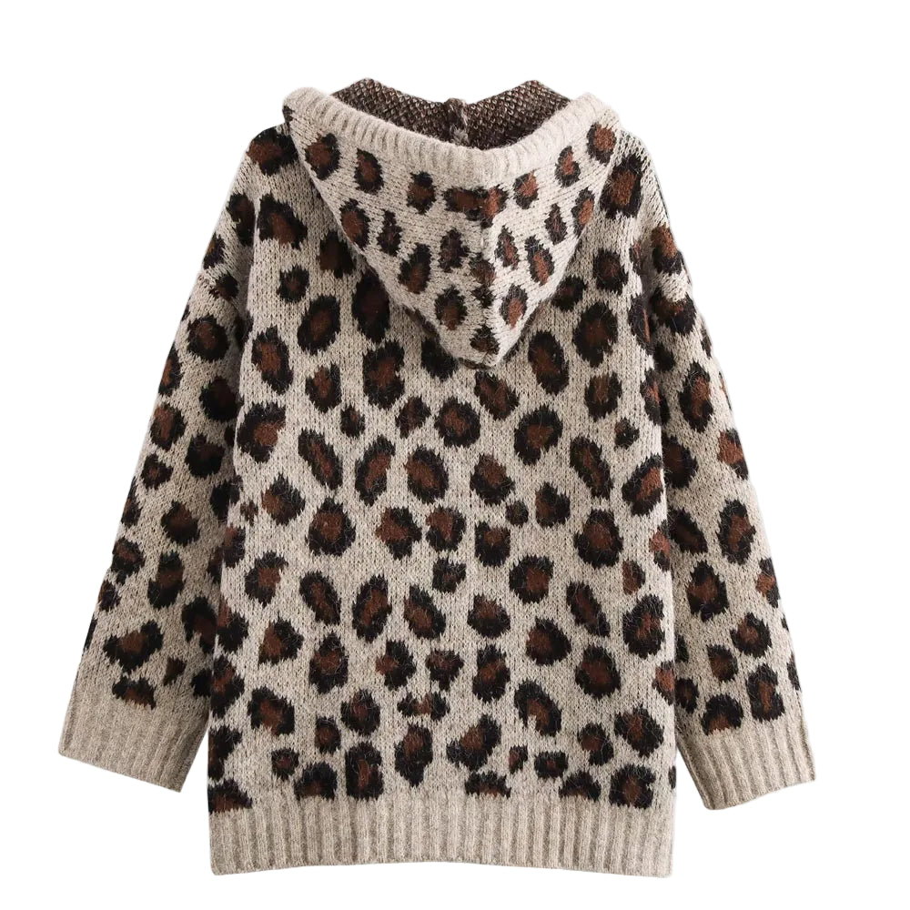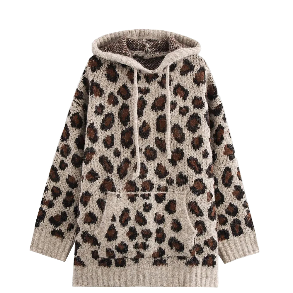 Strikket Hettegenser for Kvinner – Løs Genser med Dyremønster | Myk, Varm og Trendy Hoodie til Høst og Vinter