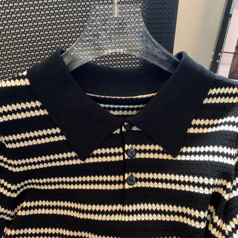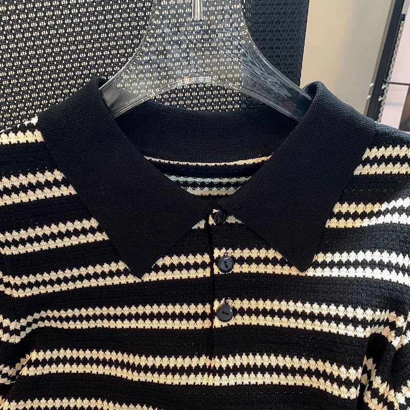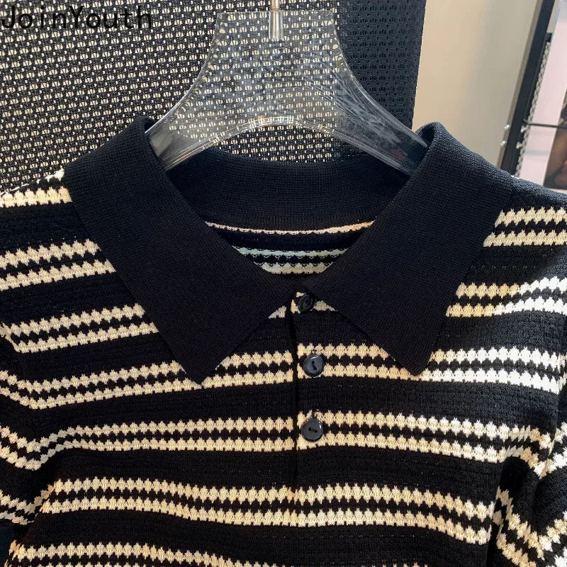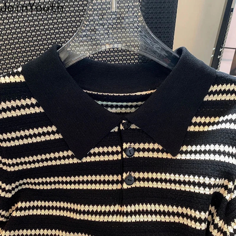 Lett, myk og superflatterende – denne stripete, kortere strikkede t-skjorten er sommerens go-to topp. Den kombinerer en ren, koreanskinspirert silhuett med en behagelig, elastisk strikk som former seg etter kroppen uten å bli stram. Lengden er akkurat passe «crop» til å treffe over midjen – perfekt til høye jeans, linbukser eller et A-skjørt når du vil se effortless chic ut.