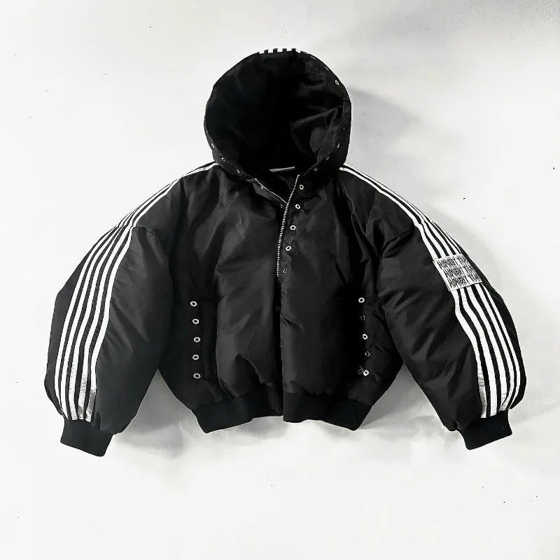 Denne stripete vinterjakken for dame kombinerer varme, komfort og unikt design – perfekt for deg som vil holde deg stilig selv på de kaldeste dagene. Inspirert av Harajuku-streetwear og moderne urban mote, har jakken en løs passform som gir både bevegelsesfrihet og et avslappet uttrykk.