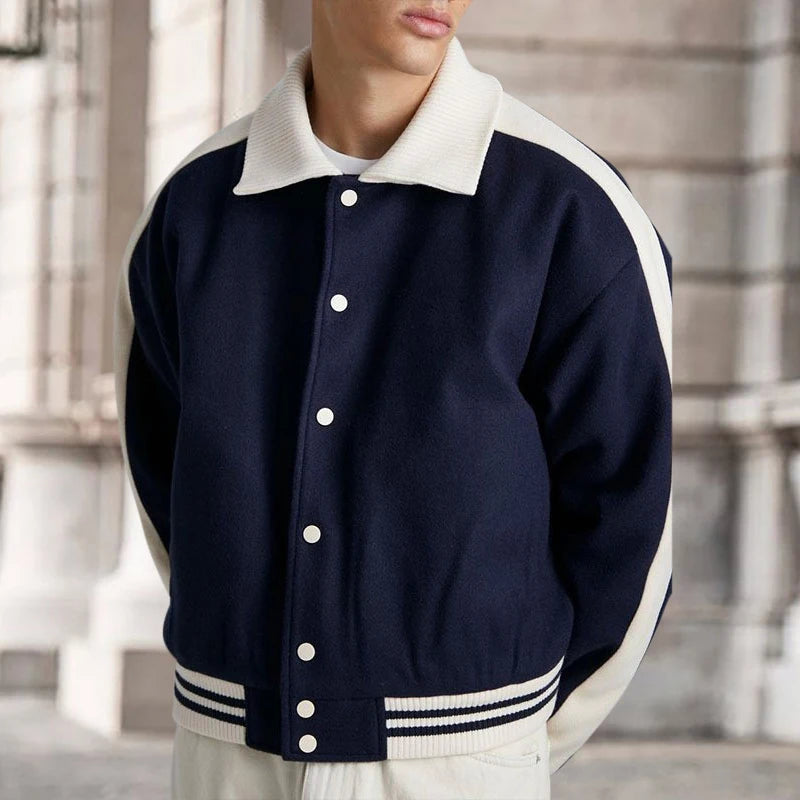 Trendy Bomberjakke for Menn – Streetwear Jakke med Patchwork-design og Krage | Casual Høst- og Vinterjakke med Knapper