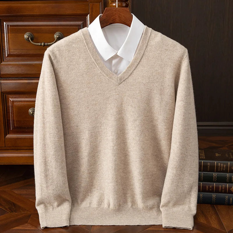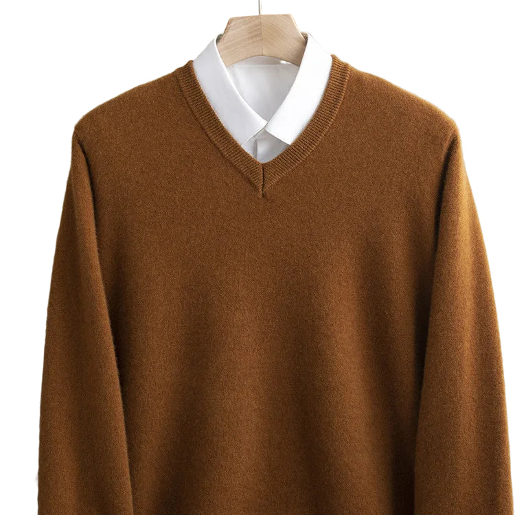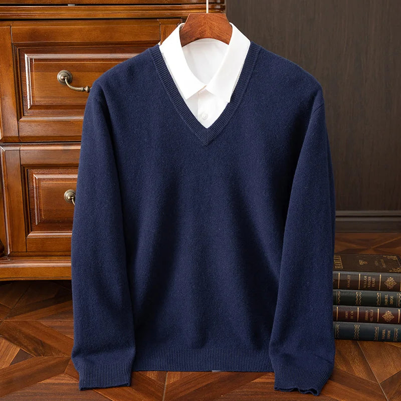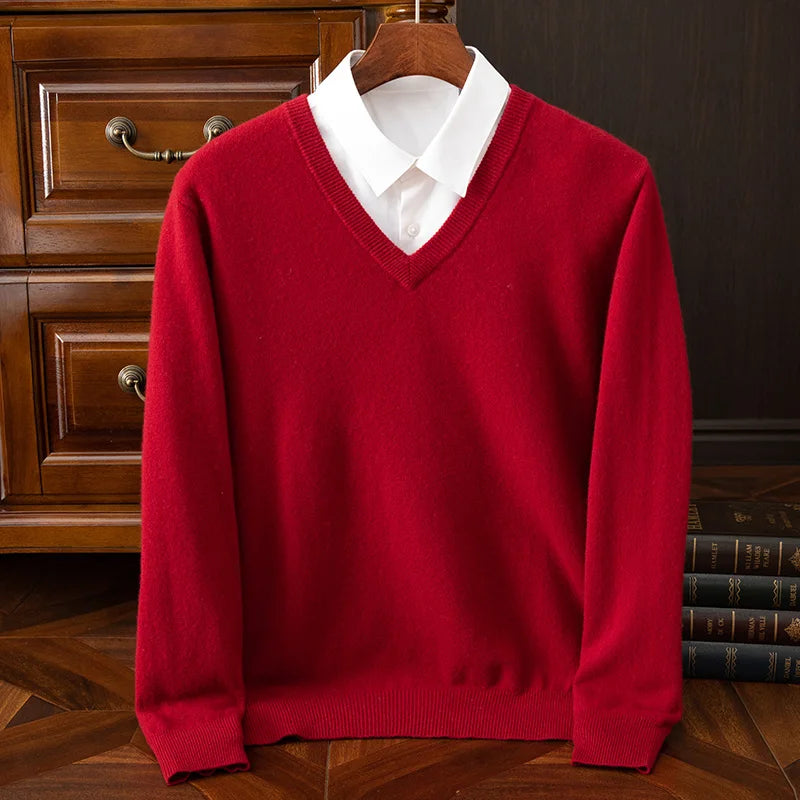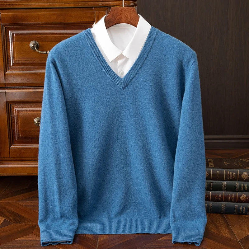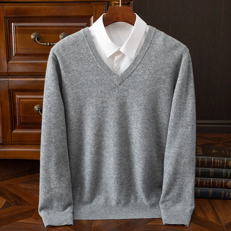 V-hals Genser for Menn i 100 % Merinoull – Myk og Varm Ullgenser | Klassisk Business og Casual Strikkegenser til Høst og Vinter
