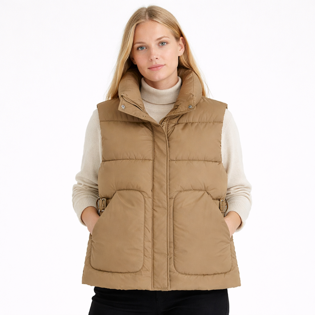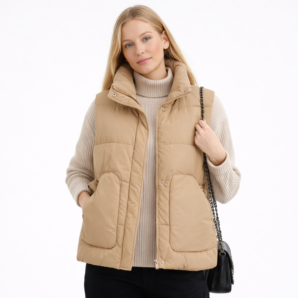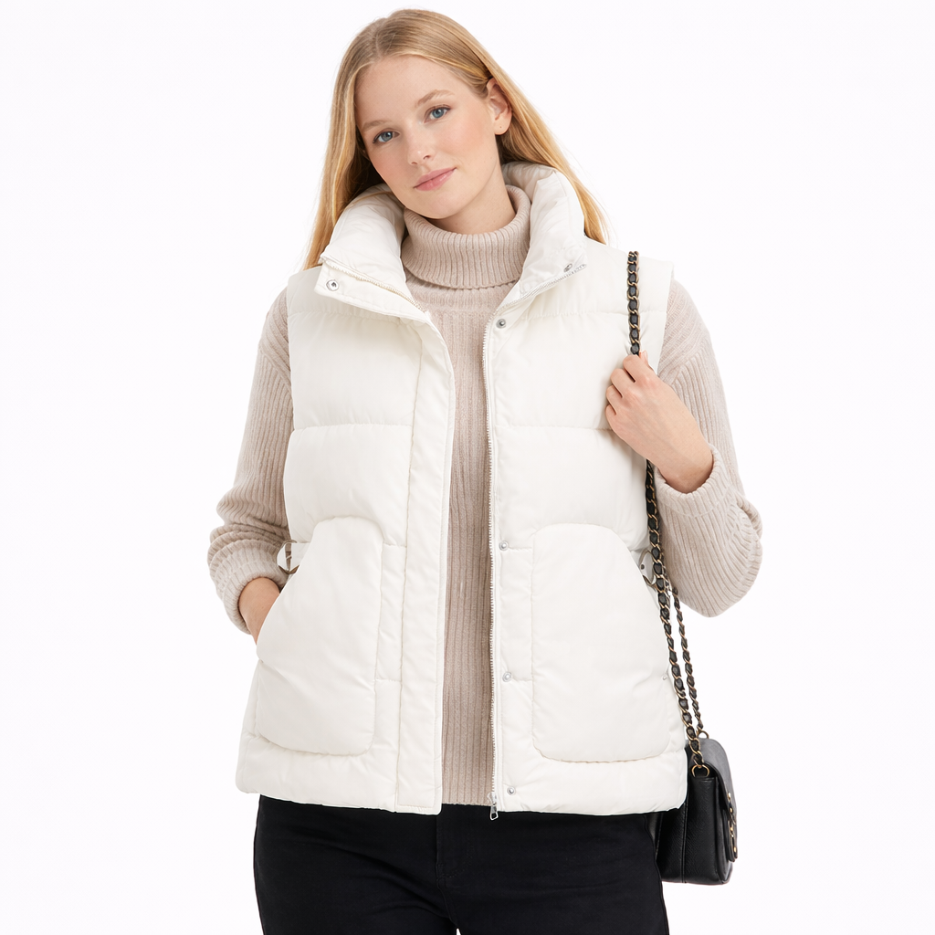Lyst på et plagg som gjør hele antrekket mer gjennomført på to sekunder? Denne vatterte, ermeløse damevesten gir deg den perfekte kombinasjonen av varme, komfort og stilren koreansk inspirasjon – akkurat slik vi liker det på kjølige høst- og vinterdager.