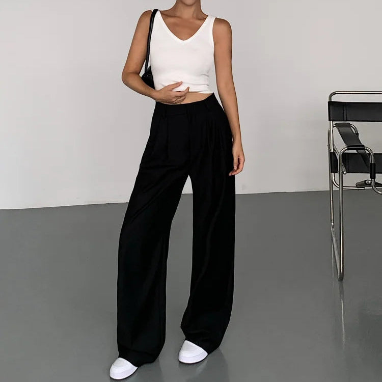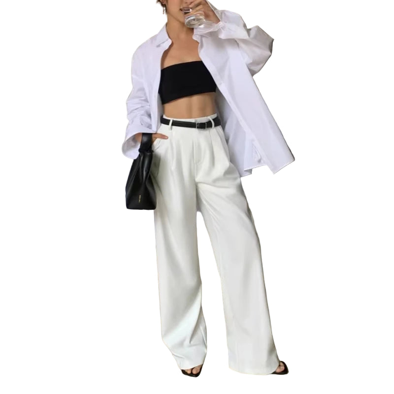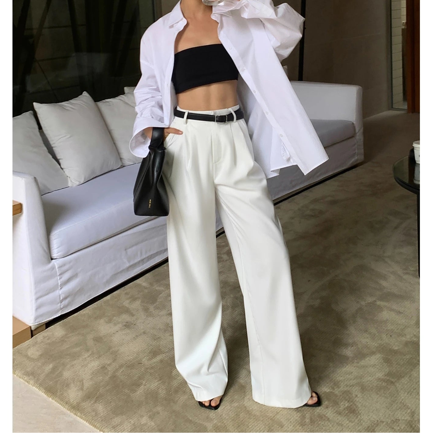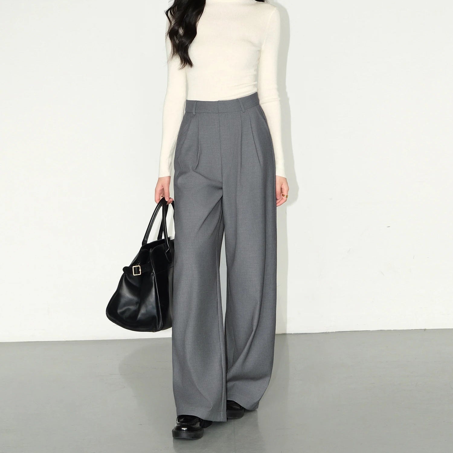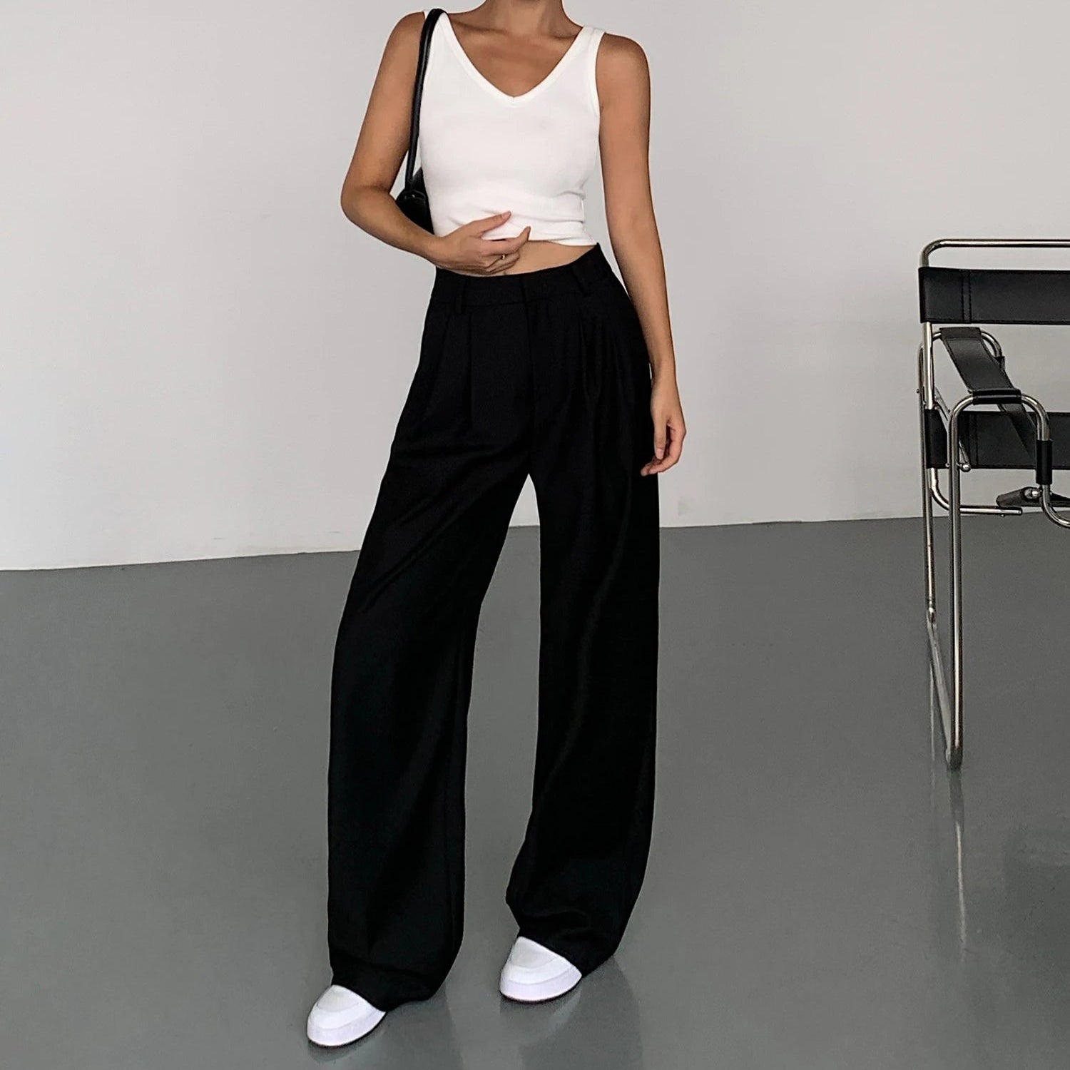 Vide Dressbukser for Dame – Høyt Liv & Elegant Snitt | Løse Kontorbukser med Flytende Fall til Høst 2025
