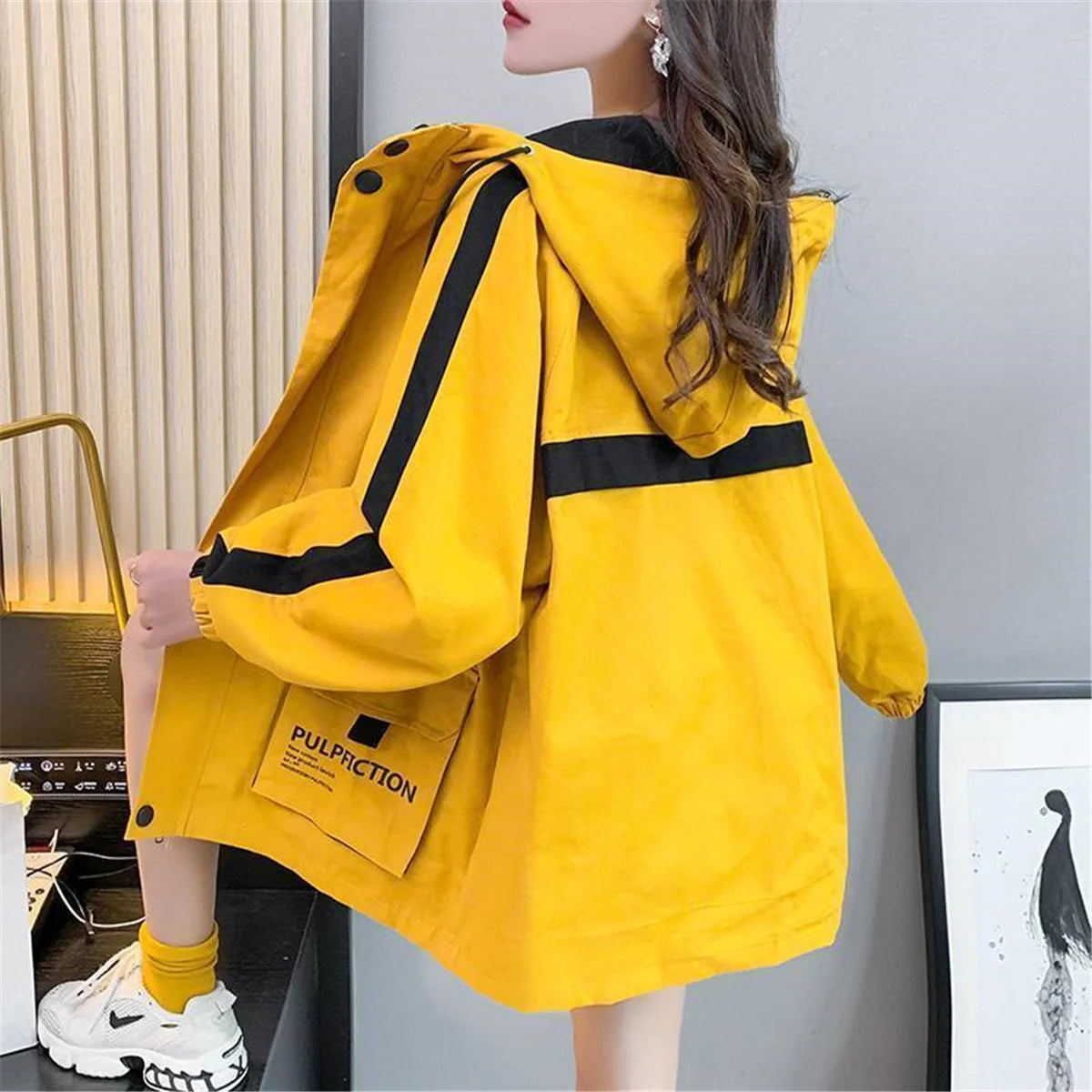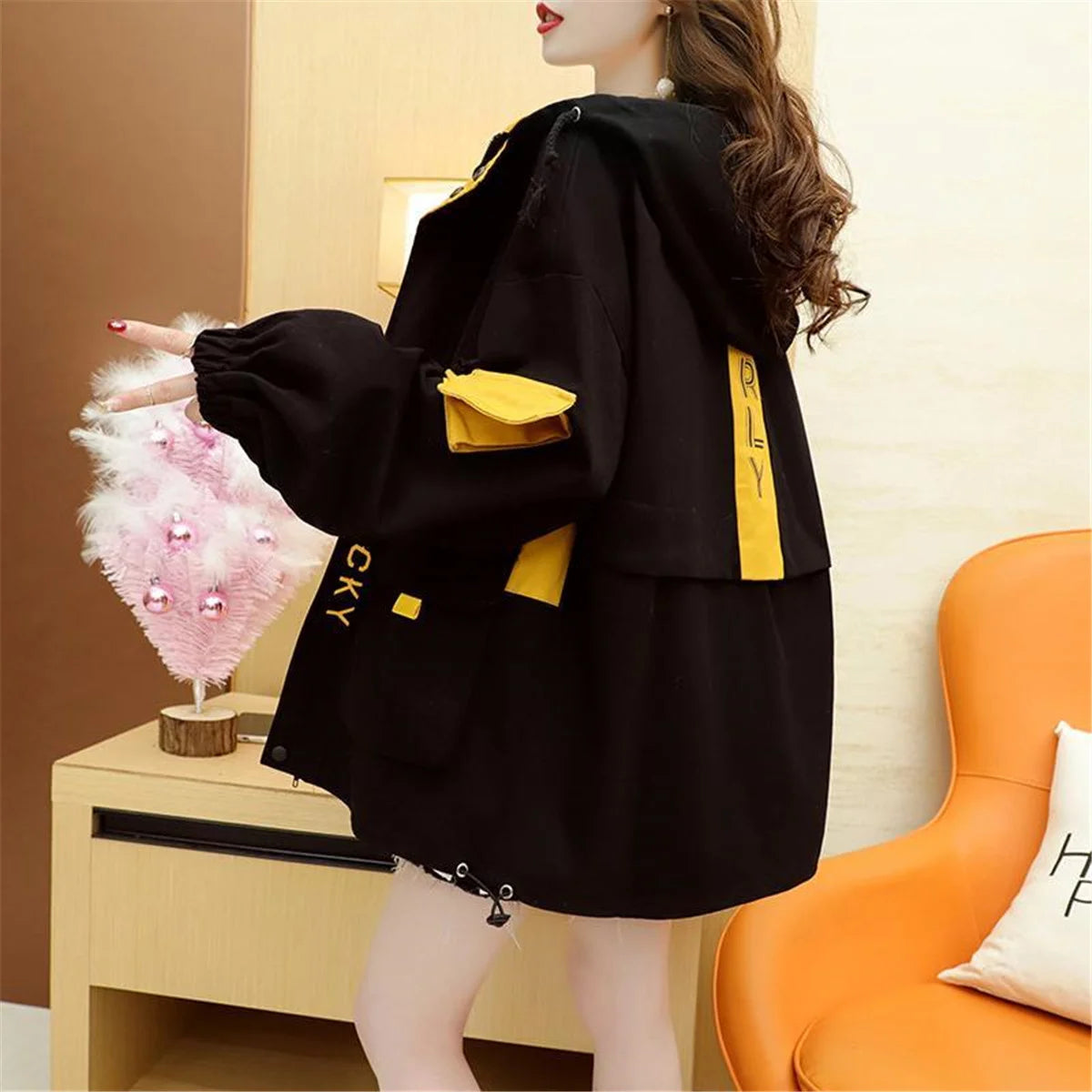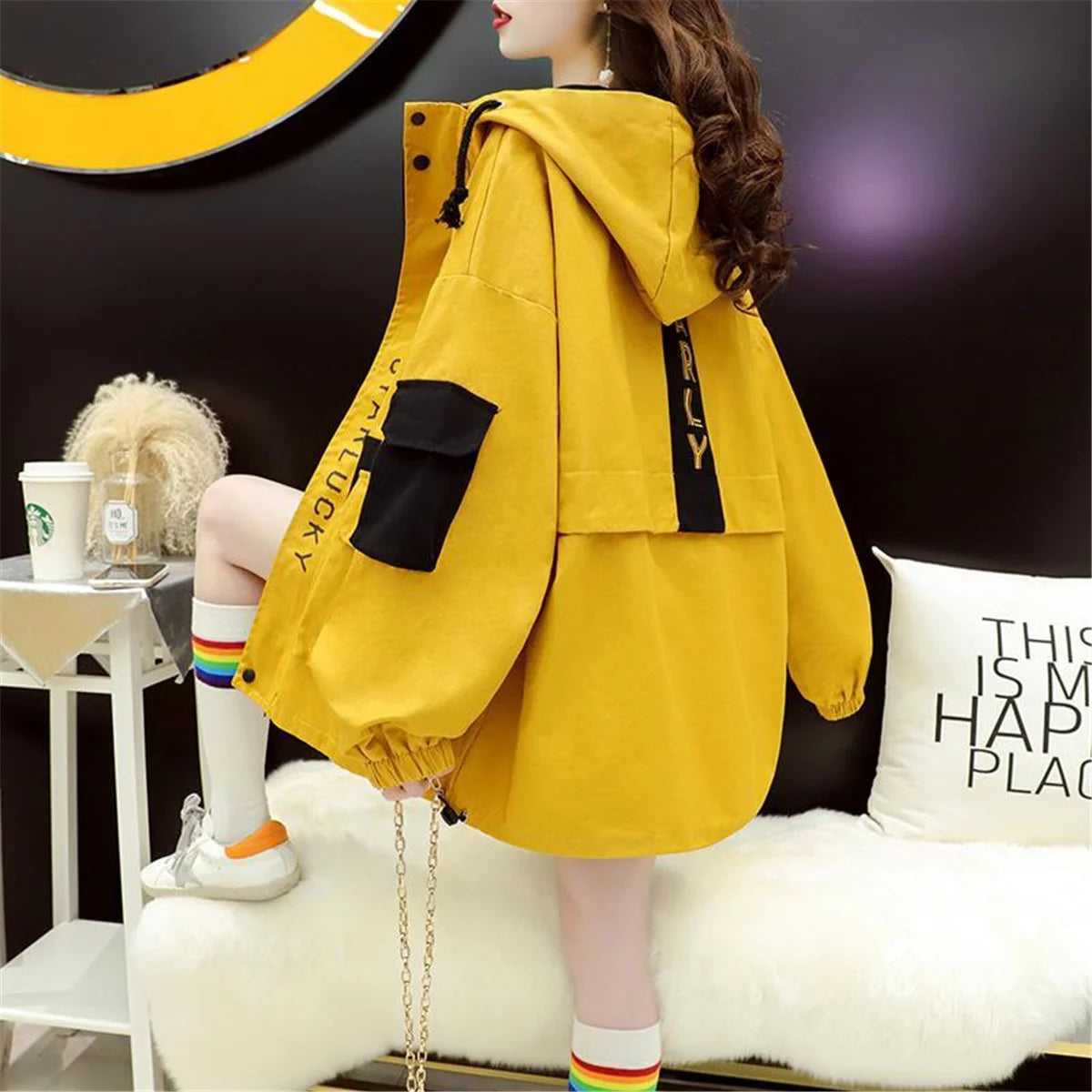 Skill deg ut med denne trendy streetwear-jakken som henter inspirasjon fra Harajuku og Kpop-moten. Med sitt unike patchwork-design og avslappede passform, gir denne jakken en perfekt miks av komfort, kreativitet og urban stil.