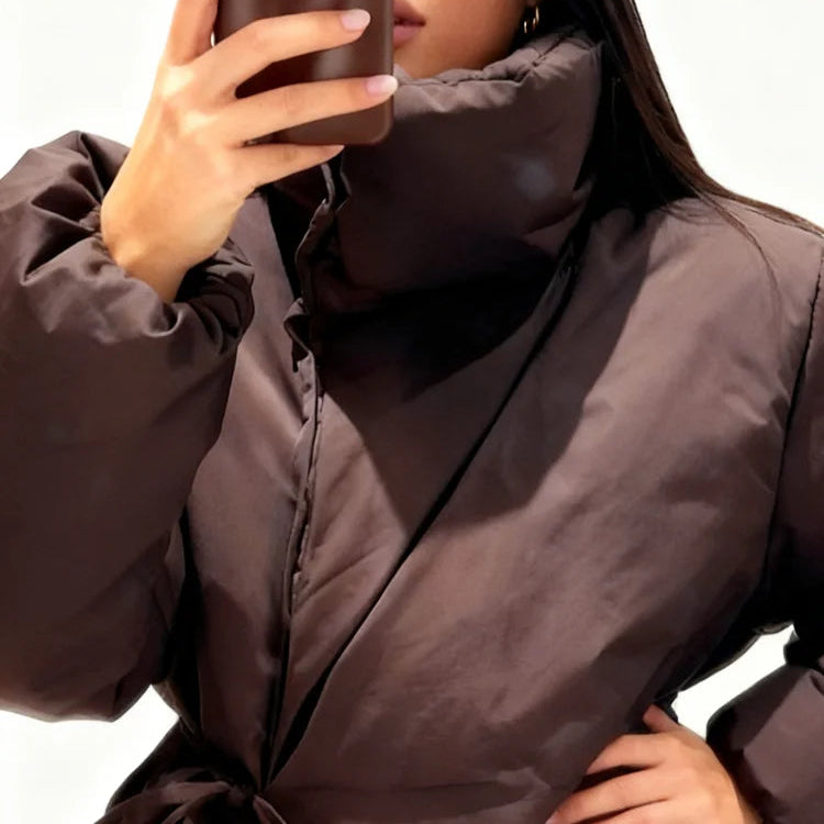Vinterjakke for Kvinner med Snøring i Siden – Ståkrage og Lange Ermer | Varm, Myk og Trendy Jakke til Hverdag og Byliv