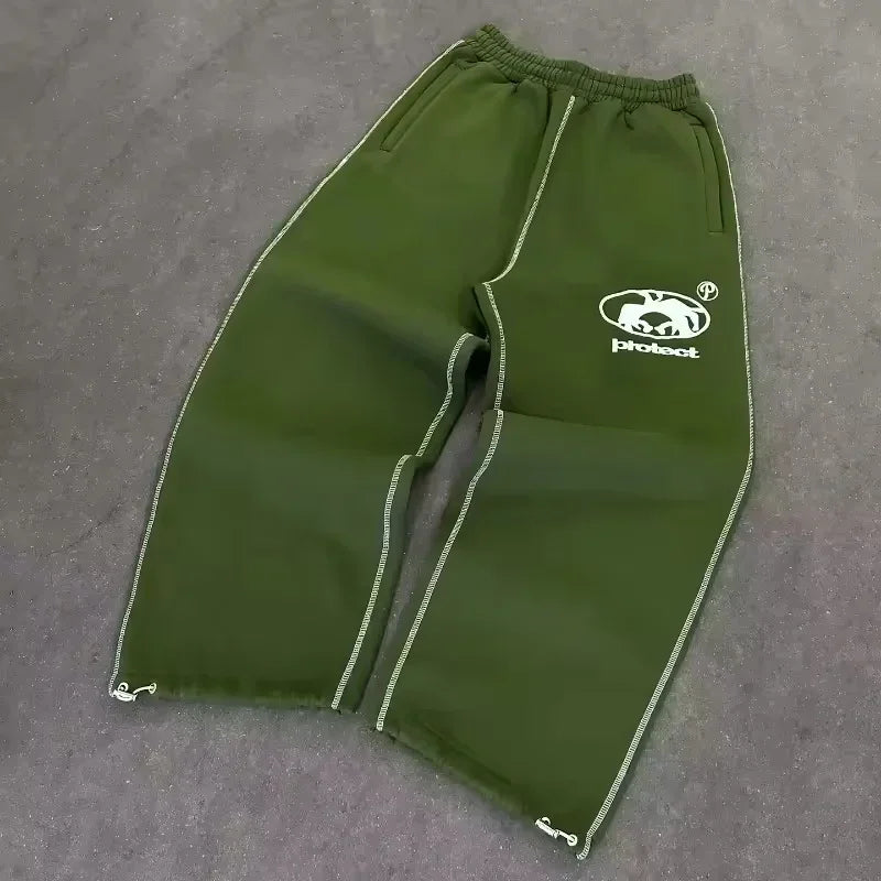 Disse joggebuksene er ikke bare komfortable – de er en statement piece for alle som elsker streetwear og vil ha et stilrent plagg som skiller seg ut. Perfekt til sneakers og oversized hoodie for den komplette Y2K-stilen.