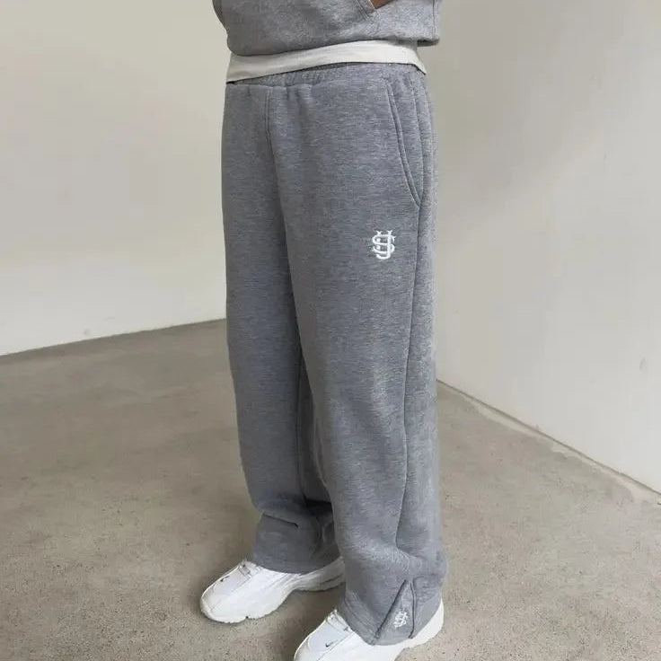 Y2K Joggebukse – Grå Brodert Streetwear | Unisex Retro Hip Hop Sweatpants